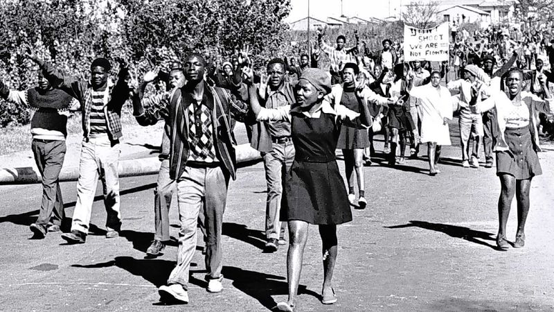 Anti-apartheid activists peacefully protest against the brutish human rights violations of the apartheid government