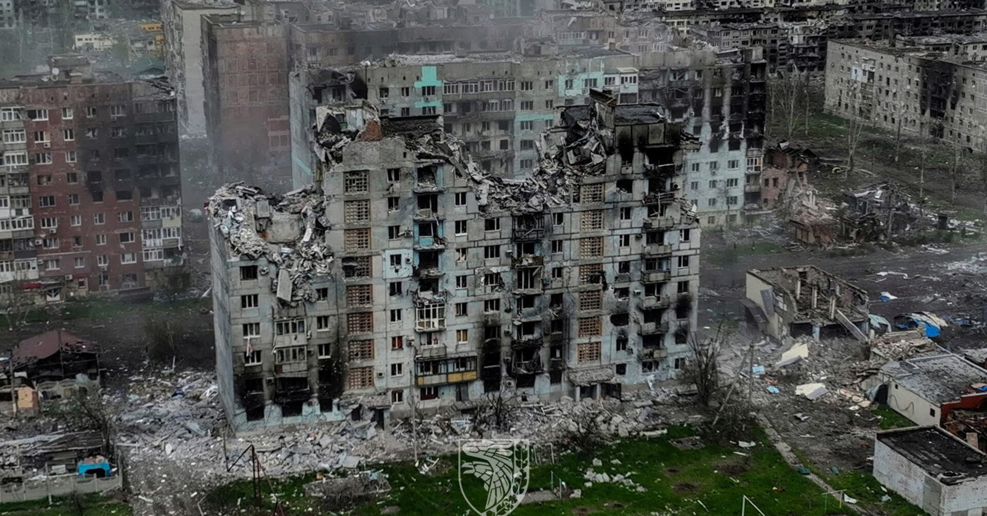 An aerial view showing destruction in the frontline town of Bakhmut, in the Donetsk region of Ukraine (May 21, 2023) [Press Service of the 93rd Kholodnyi Yar Separate Machanized Brigade of the Ukrainian Armed Forces/Handout via REUTERS]