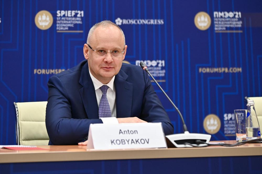 Anton Kobyakov speaking at the final press conference of SPIEF 2021 (5th June 2021) (Saint-Petersburg, ExpoForum Convention and Exhibition Centre)
