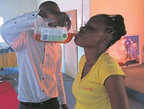 Prophet Rufus Phala of AK Spiritual Christian Church in Makgodu, Limpopo, made his church members drink Dettol (Image: Daily Sun / Mwebantu / Facebook)