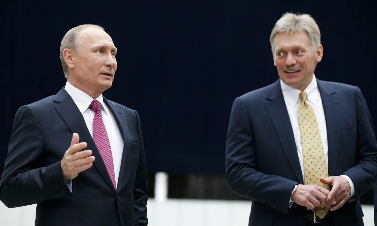Russian President Vladimir Putin (left) with Dmitry Peskov (right), spokesperson for the Kremlin & Russian Presidency [Image: Alexander Zemlianichenko/AP]