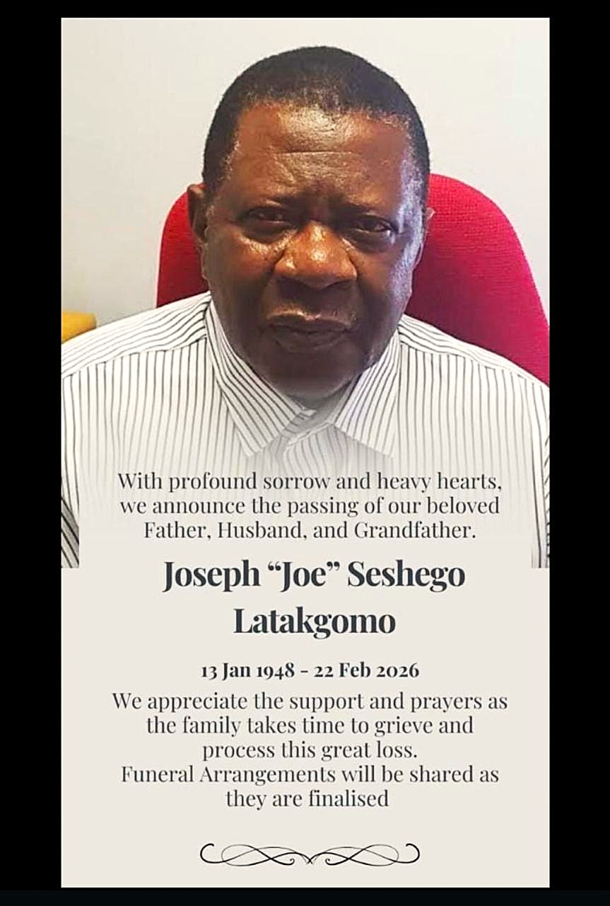 Joseph “Joe” Seshego Latakgomo breathed his last breath at Kalafong Hospital in Atteridgeville near Pretoria on Sunday 22 February 2026. He was 78 years old.