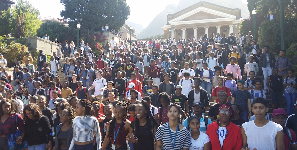 An iconic image of one of the student marches for #FeesMustFall at the University of Cape Town main campus [Image: AIDC]